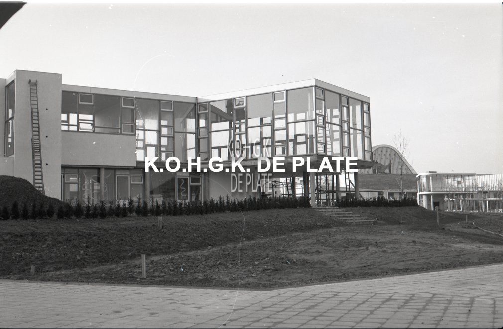 Negatief : 6 x 9 cm. - Het Oostends paviljoen in opbouw.