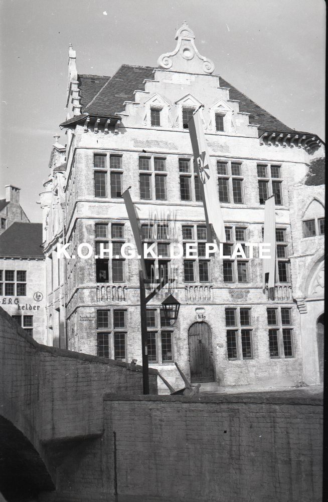 Negatief : 6 x 9 cm. - Het folkloristisch dorp "Vrolijk België". "Le Cheval Marin", een replica van het gelijknamige Brusselse gebouw, werd uitgebaat door Brasserie Vandenheuvel.