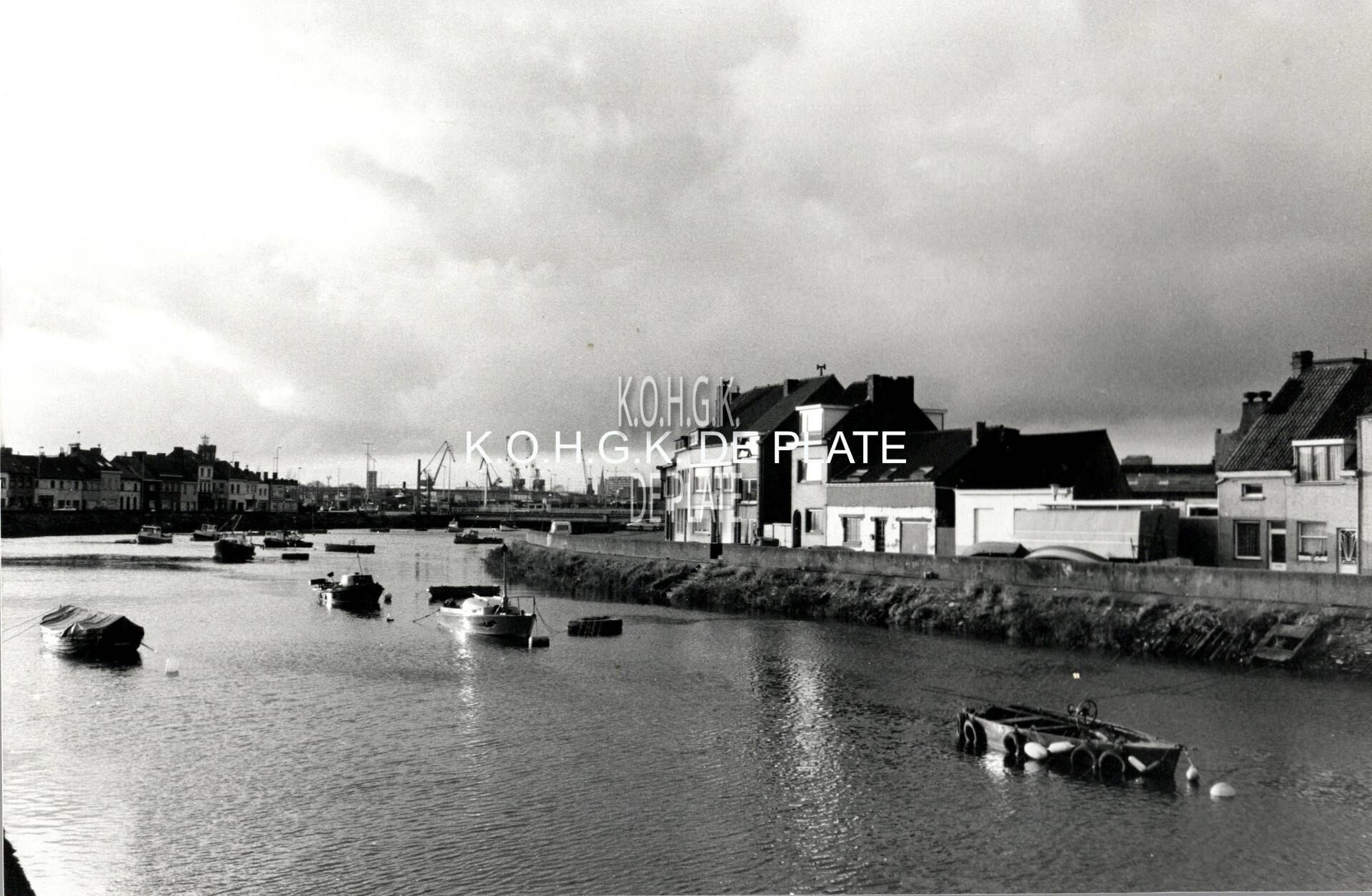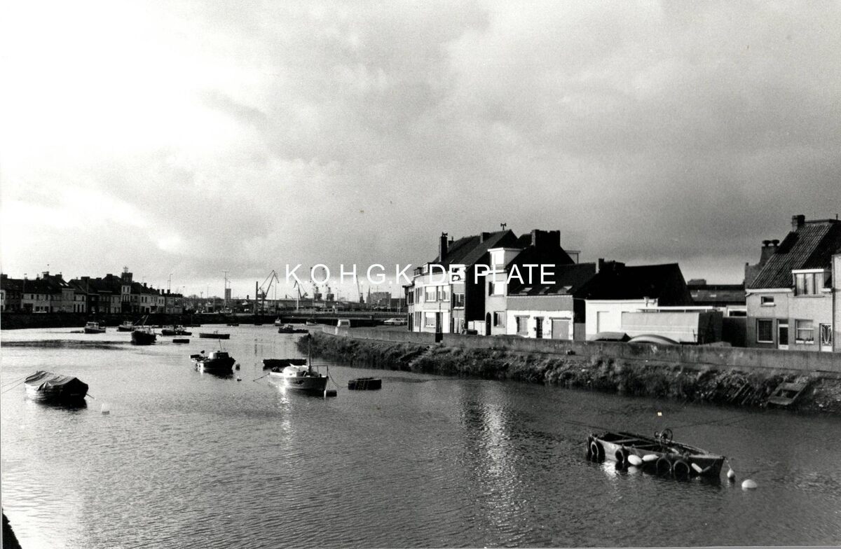 Formaat : 16 x 24 cm. - Rechts, de Bredensesteenweg. Deze huizenrij werd afgebroken voor de bouw van een zeesluis, die nooit werd gebouwd. Nu een groene zone 't Eilandje, die deel uitmaakt van de Vuurtorenwijk.