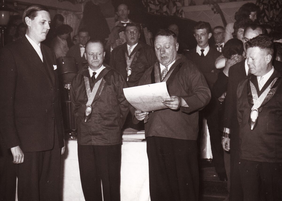 Burgemeester Jan Piers wordt lid in de "Orde van de Kloeffe" . Dit gebeurde op het 1e Groot Kloeffebal in dancing Carnegie, door de grootmeester in de "Orde van de Kloeffe", Fernand Monteny
