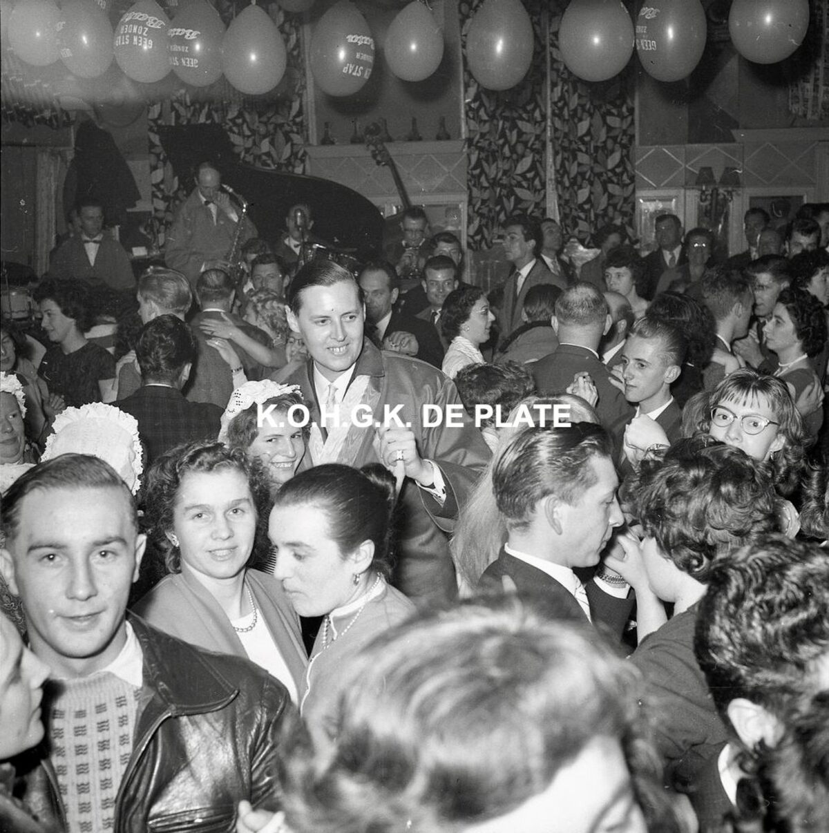 Formaat : 12,5 x 12,5 cm. - Burgemeester Jan Piers, op het 1e Groot Kloeffebal in dancing Carnegie. Het "Van Houtte Dansorkest" speelt ten dans