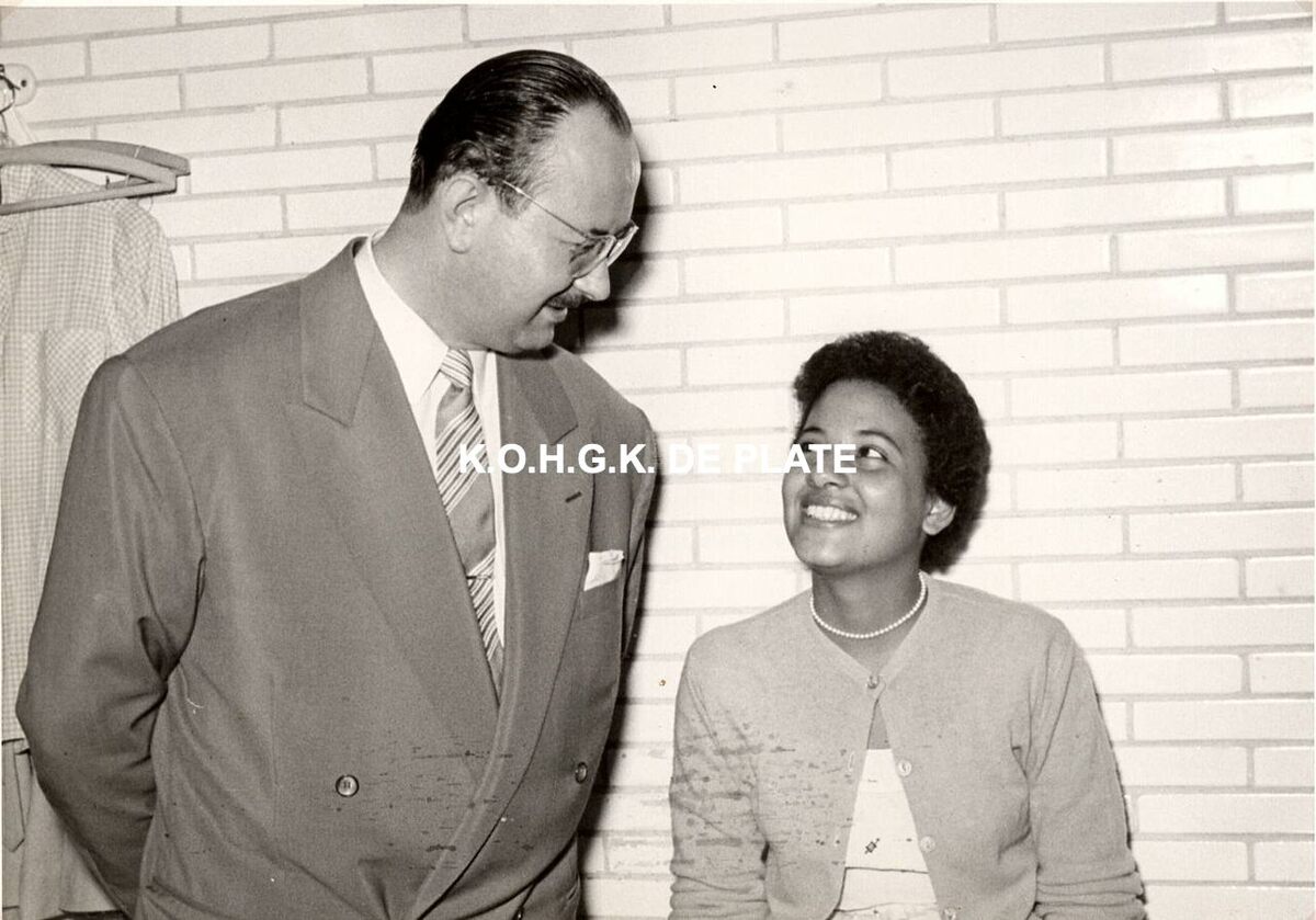 Formaat : 12,5 x 18 cm. - Hazel Scott in gezelschap van Roger De Ramée, directeur Kursaal