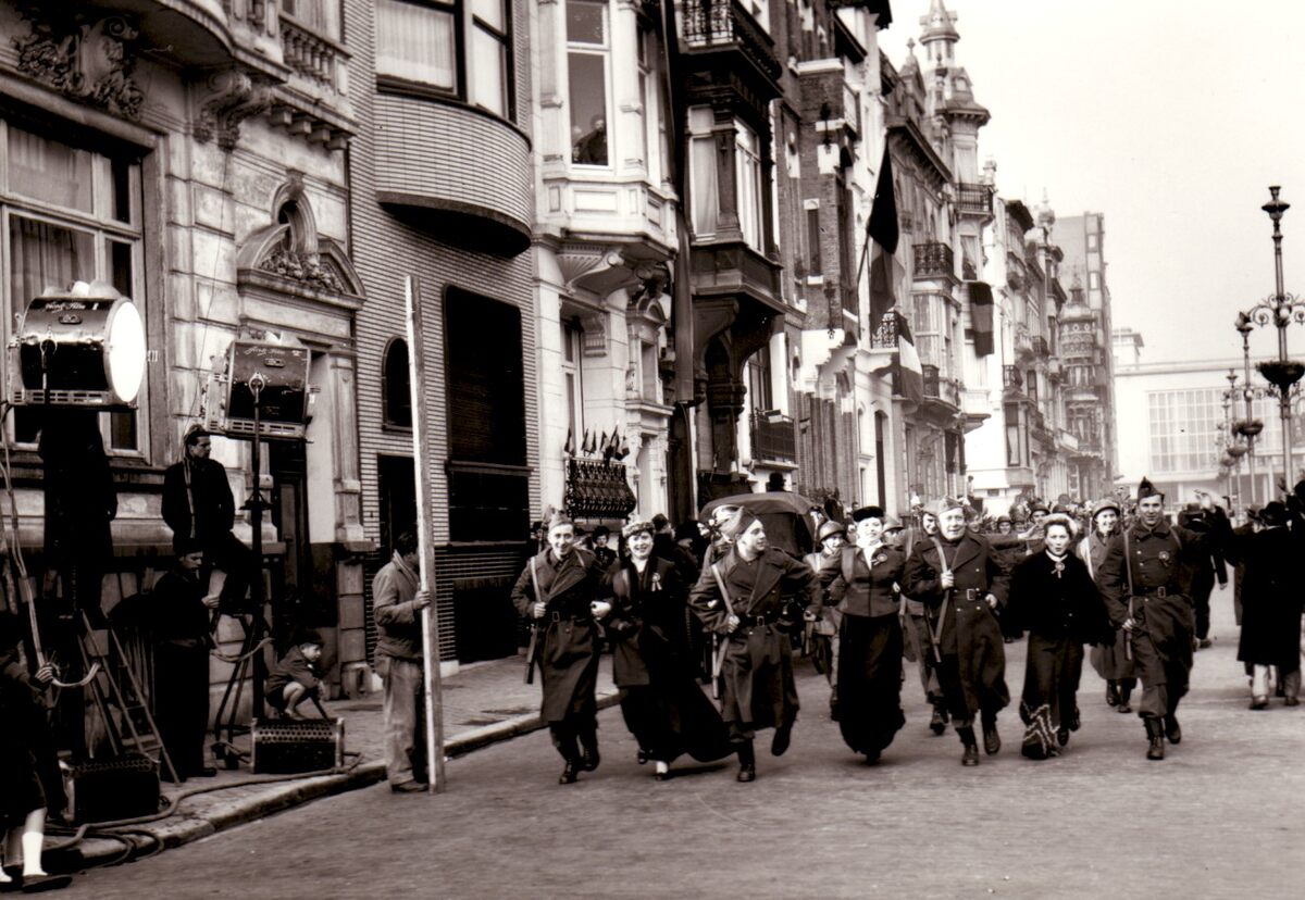 Leopold II laan,figuranten voor een film.