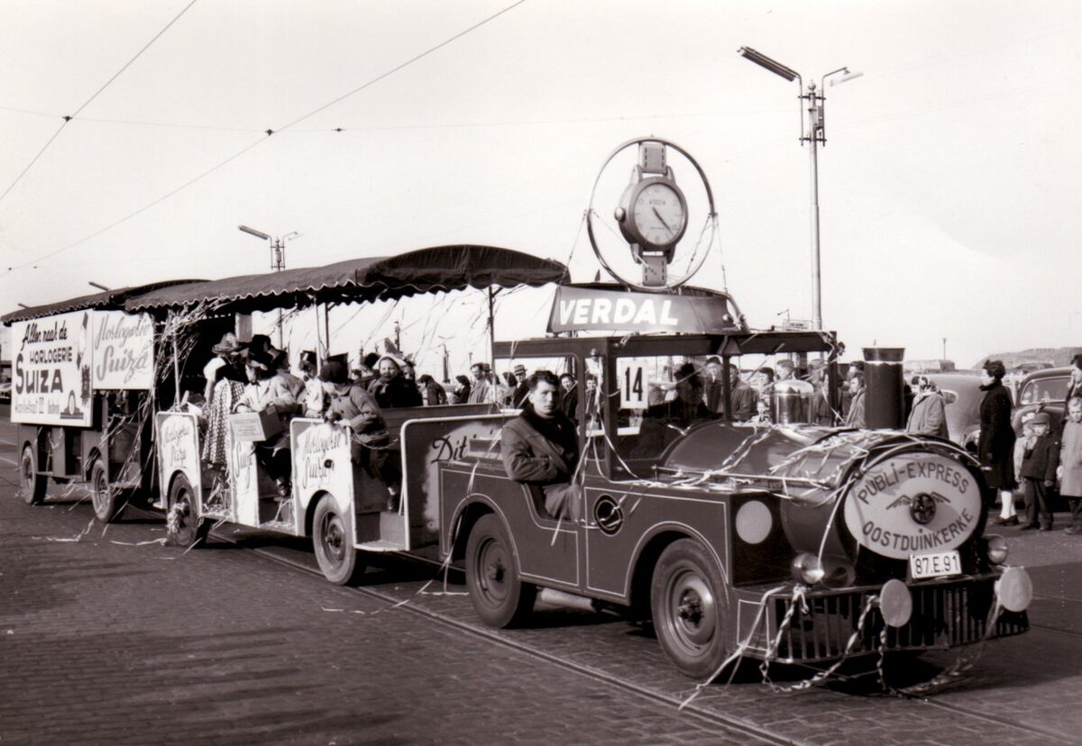 Een "Treintje" uit oostduinkerke in een reclamestoet op de Visserskaai.