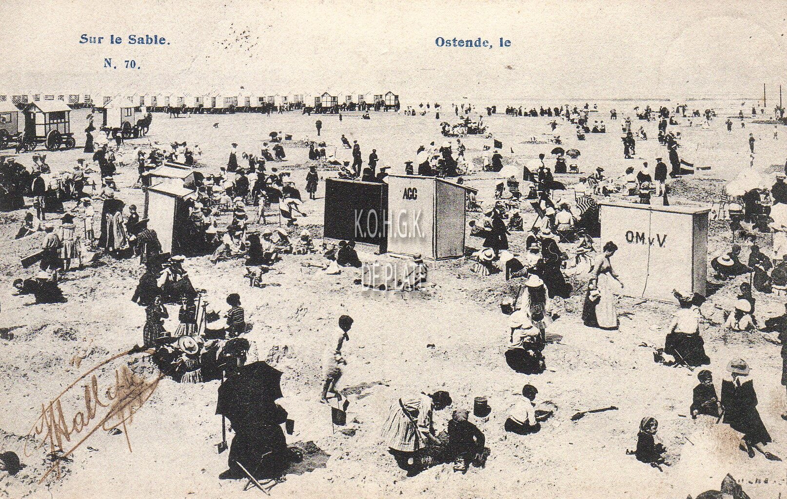N° 70. - Sur le sable. - Strandrecreatie op het Groot Strand tijdens de Belle Epoque
