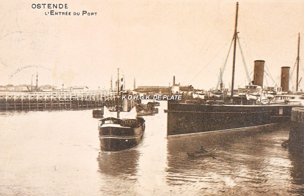 Ostende - L'Entrée du Port. - De havengeul met o.a. een pakketboot van de Oostende Dover Lijn