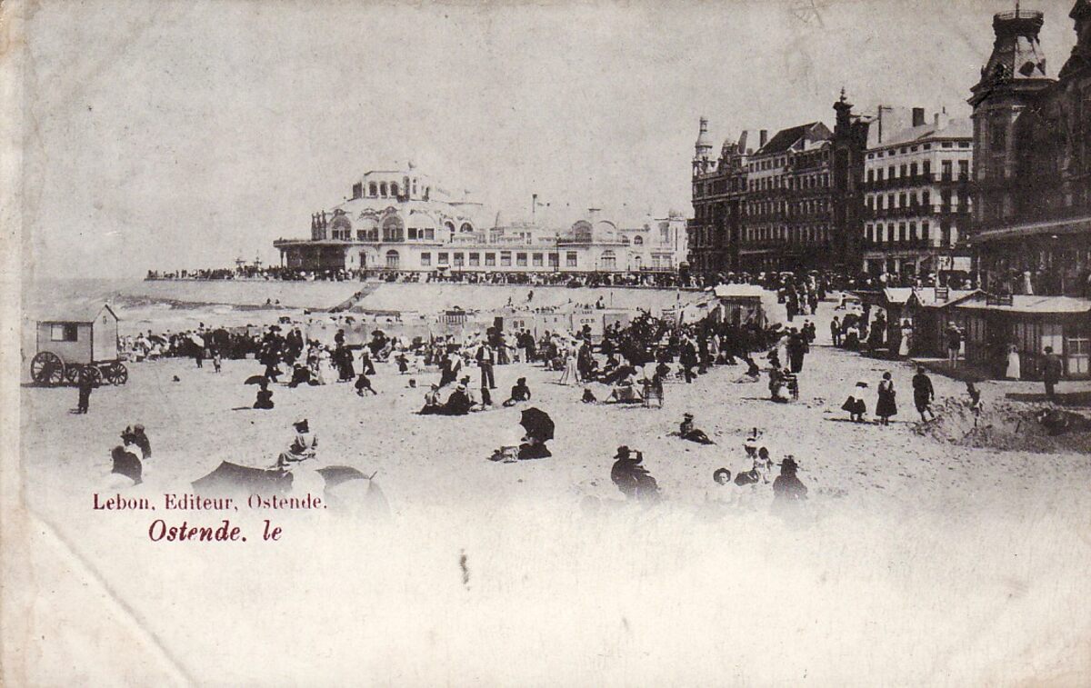 Le Bon, éditeur, Ostende. - Strandrecreatie op het Groot Strand nabij de westelijke gevel van het tweede Kursaal langs de Zeedijk