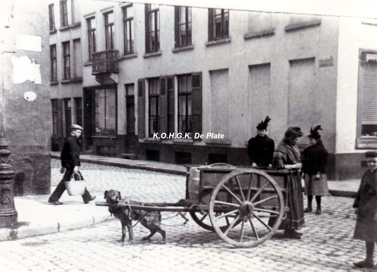 Formaat : 17.5 x 12.5 cm. - De hoek Weststraat, thans Adolf Buylstraat met de Christinastraat (noordzijde)". (Norbert Hostyn)