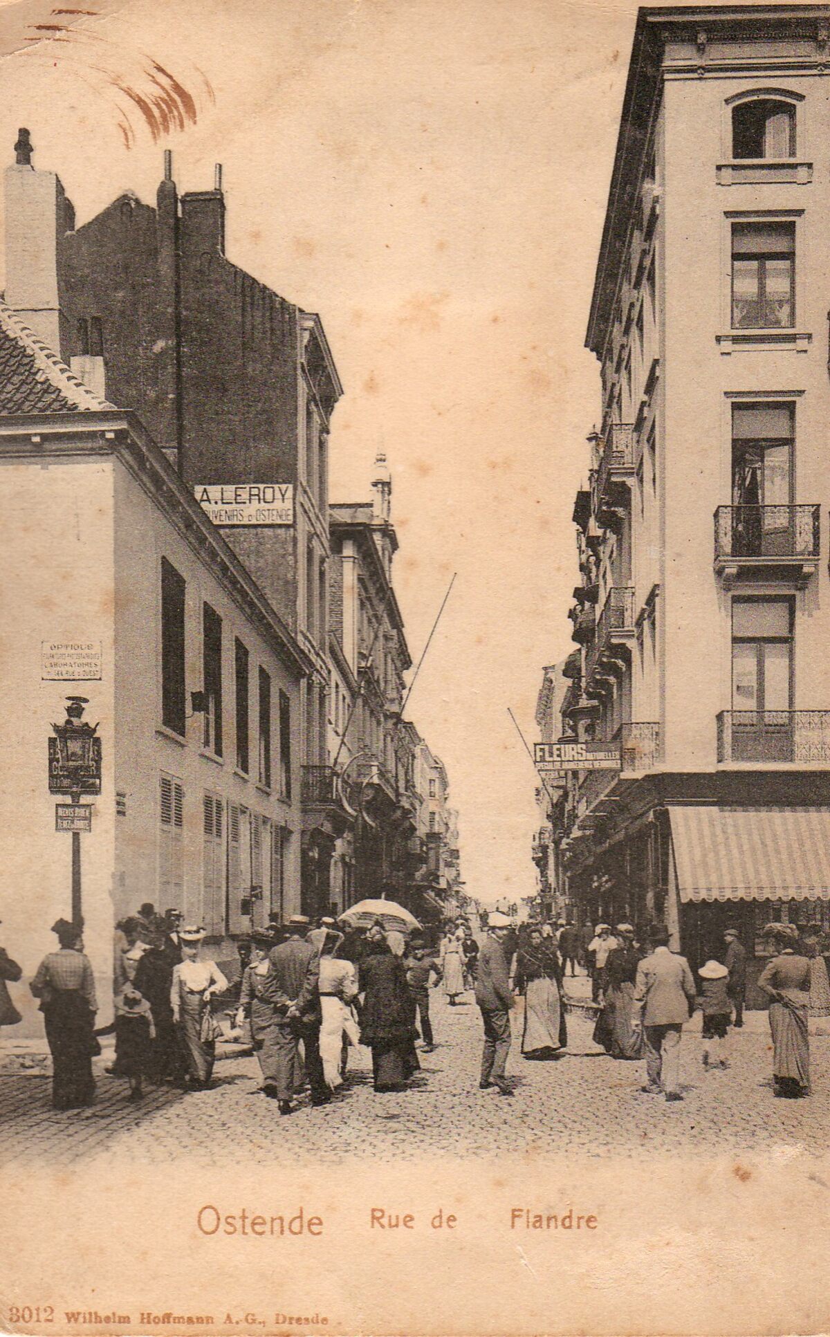 Wilhelm Hoffmann A.G., Dresde, N° 3012. - Ostende - Rue de Flandre. - Ex invent. nr. 1977/2255. - De Vlaanderenstraat, gezien vanaf de hoek van het Wapenplein, richting de Zeedijk.