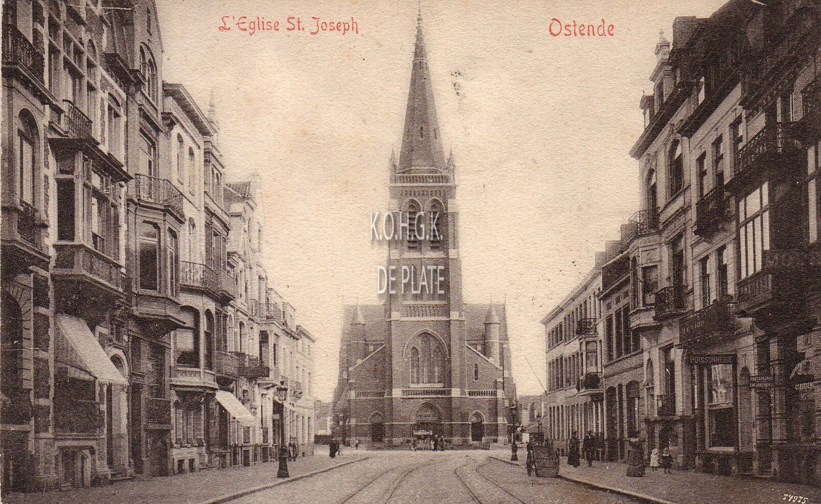 Edit. V.G. [=Victor Grégoire], 42, Avenue du Midi, Bruxelles. - Ostende - L'Eglise St Joseph. - De Sint Jozefskerk gezien vanuit de Rogierlaan.