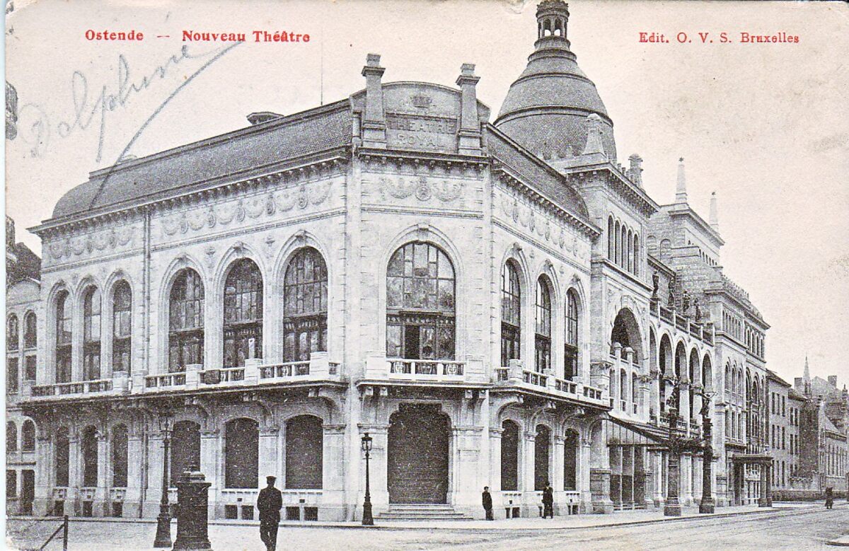 O.V.S. - Ostende - Nouveau Théatre. - De Koninklijke Schouwburg, hoek Van Iseghemlaan en Vlaanderenstraat. Met op de hoek, de traditionele brievenbus