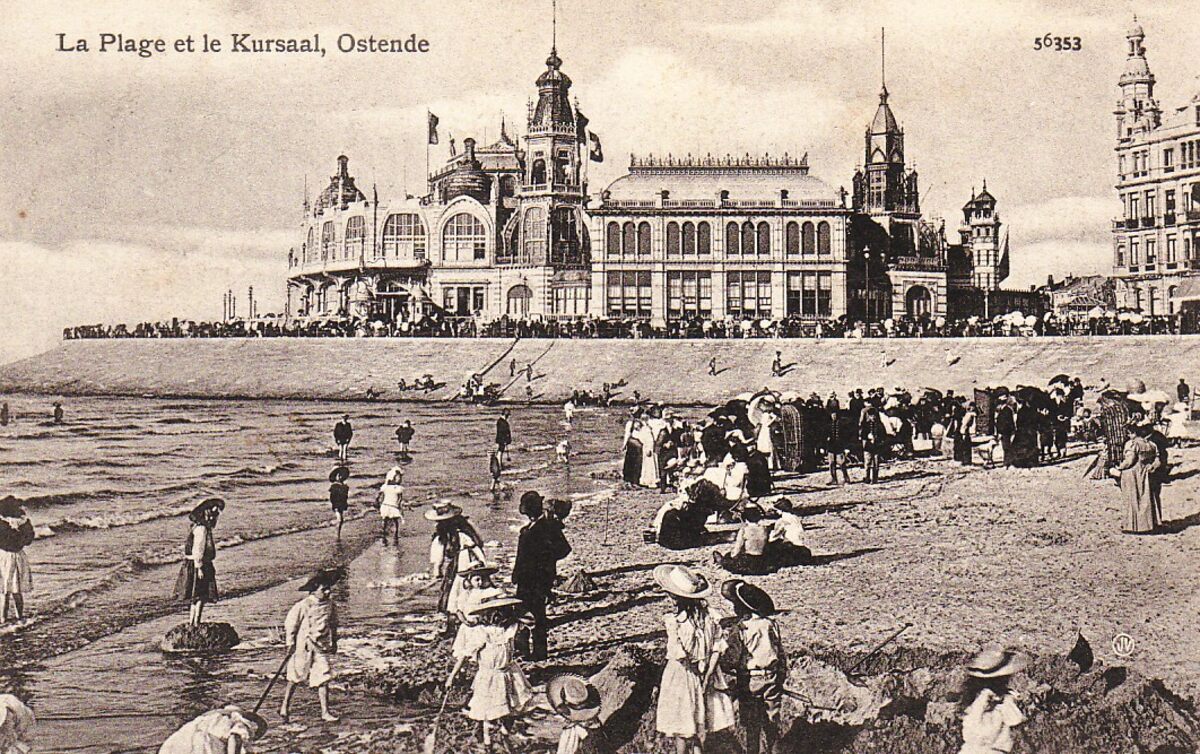 Valentine, N° 56353. - Ostende - La Plage et le Kursaal. - Spelende kinderen op het Groot Strand nabij de westelijke gevel van het derde Kursaal langs de Zeedijk.