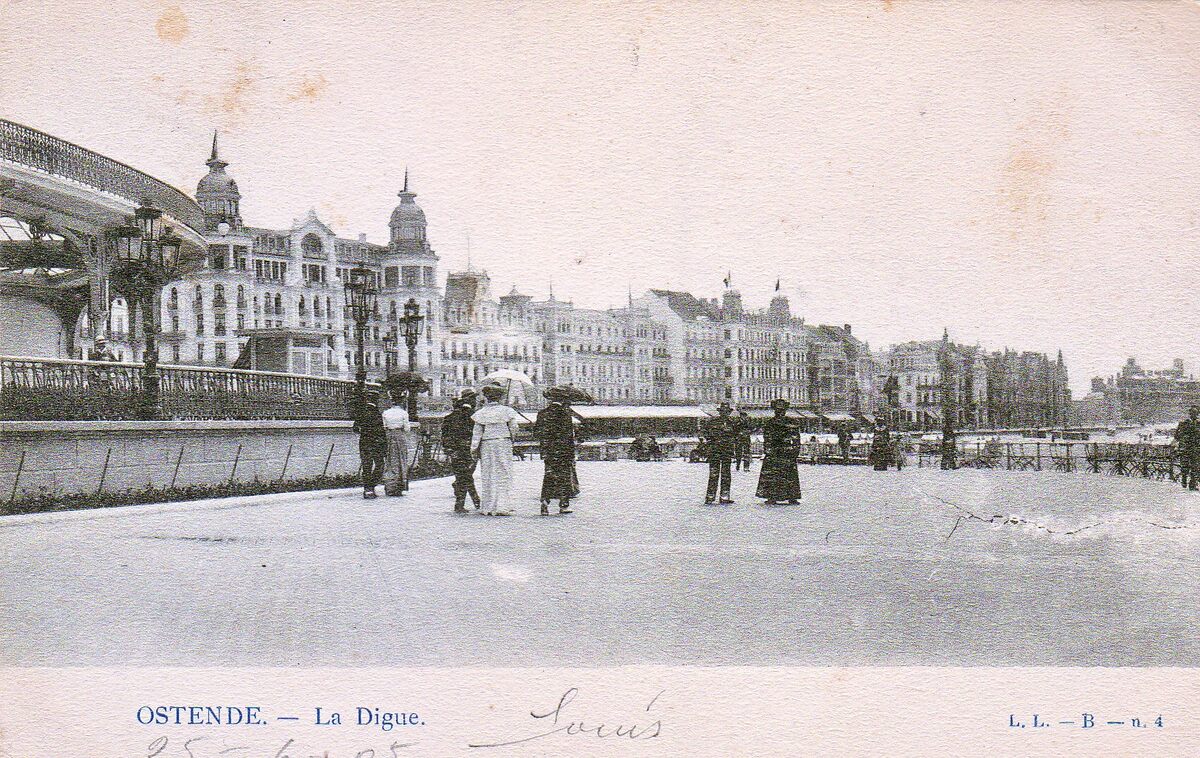 L.L. - B - N° 4. [Lagaert]. - Ostende - La digue. - De Zeedijk, ten westen van de Kursaal, richting het Koninklijk Chalet