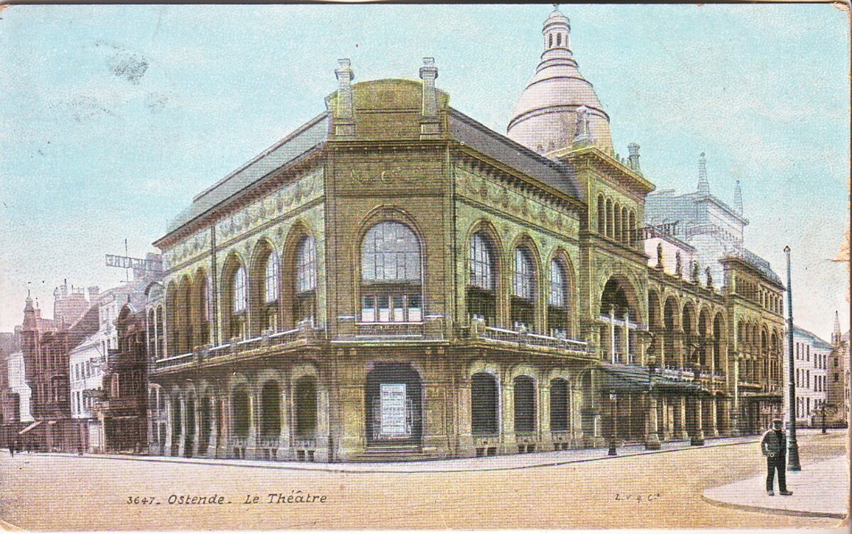 Aqua Photo, N° 3647. - Ostende - Le Théâtre. - Bijgekleurde kaart. - De Koninklijke Schouwburg, gelegen op de hoek van de Van Iseghemlaan en de Vlaanderenstraat