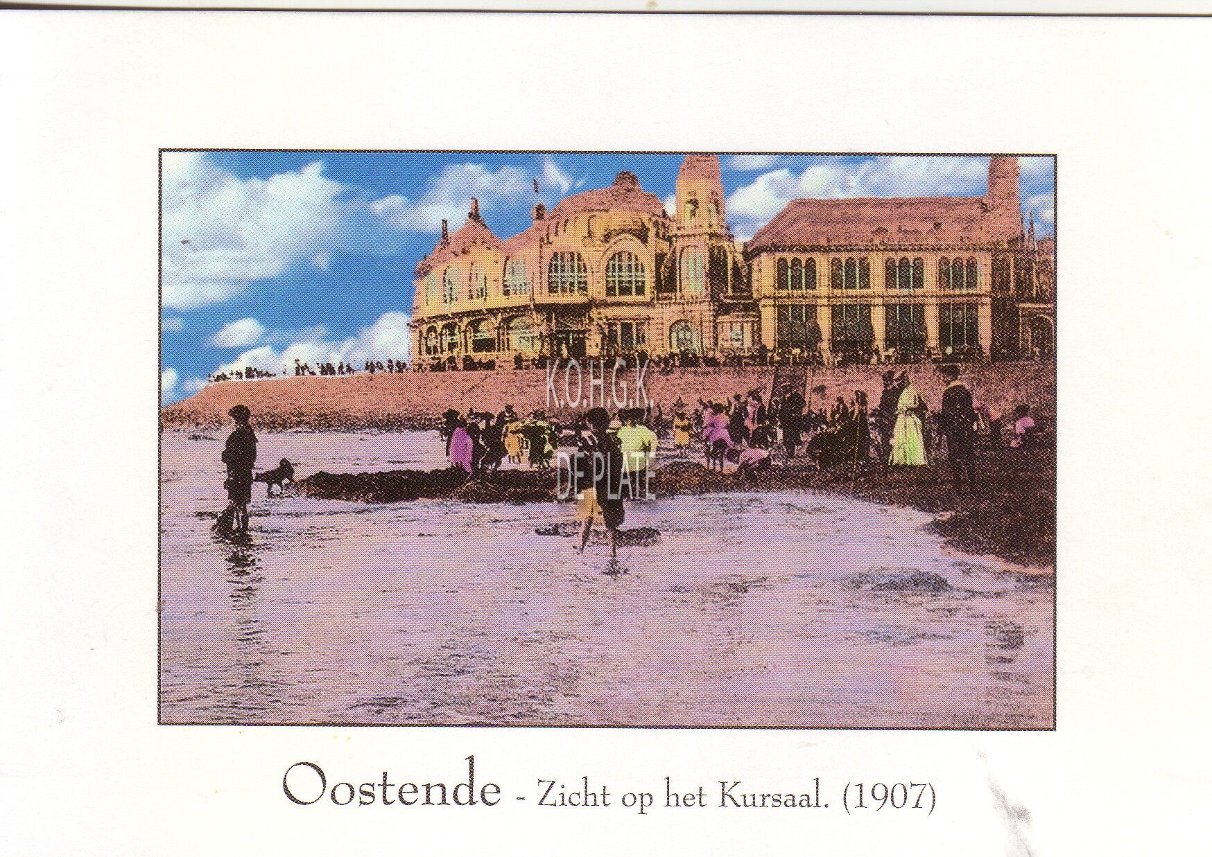 Postkaart Cartaview 00312. - Oostende - Zicht op het Kursaal 1907. - Bijgekleurde kaart. - We zien de westgevel van het derde Kursaal langs de Zeedijk, vanaf het Groot Strand.