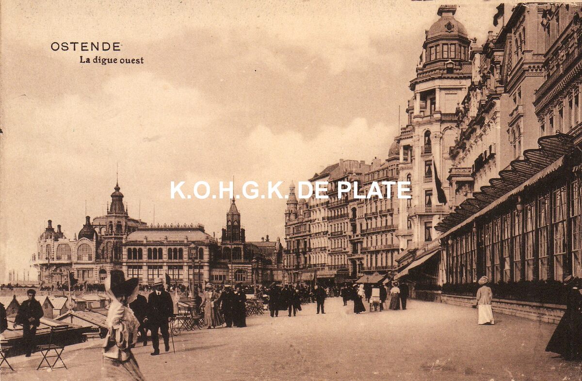 Ostende - La digue ouest. - De Zeedijk, richting de westgevel van het derde Kursaal. Rechts, de grote hotels en links, het Groot Strand