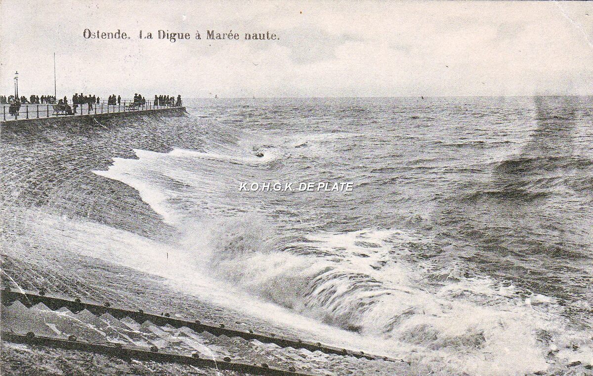 Ostende - La Digue à Marée haute. - Golven tegen de Zeedijk ter hoogte van het klein strand