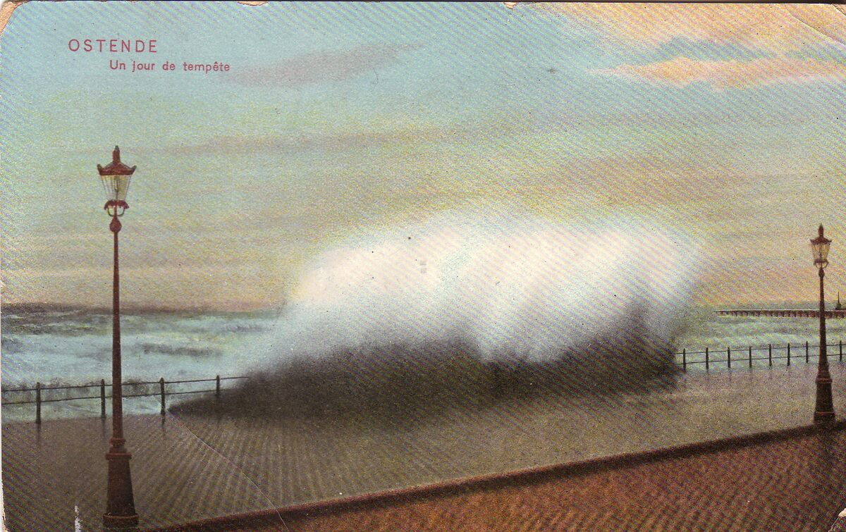 Dr Trenkler. - Ostende - Un jour de tempête. - Bijgekleurde kaart. - De Zeedijk bij stormweer