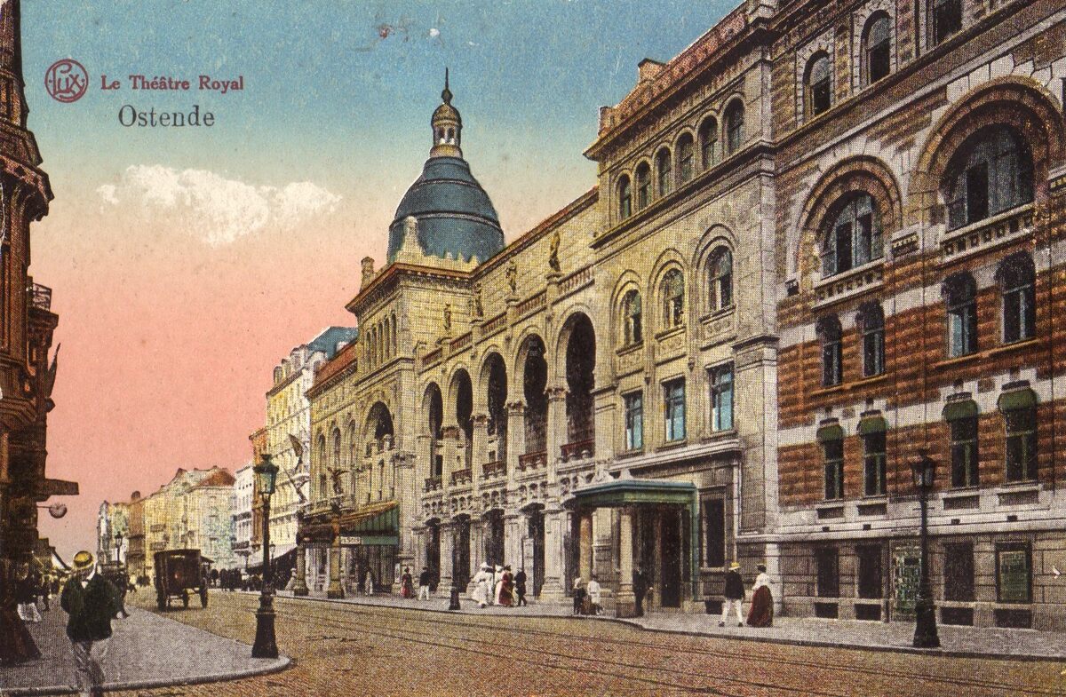 LUX. - Ostende - Le Théâtre Royal. - Gekleurde prentkaart. - De Koninklijke Schouwburg langs de Van Iseghemlaan. Prentkaart voor de Eerste Wereldoorlog.