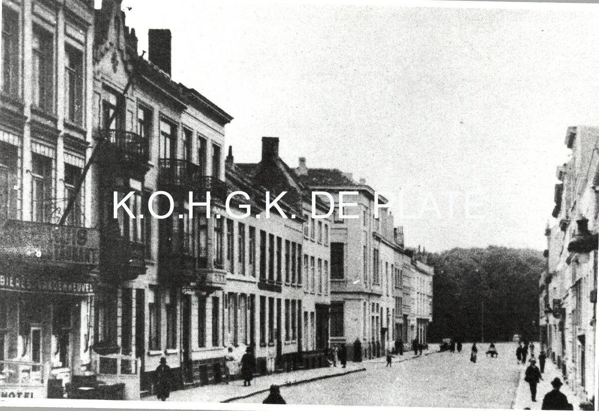 Afdruk. - Formaat : 9 x 13 cm. - Gedeelte van de Jozef II-straat gezien richting Leopoldpark. Links o nr. 21, het hotel "Ons Huis". Het hotel werd toen uitgebaat door de heer Ch. De Rycker