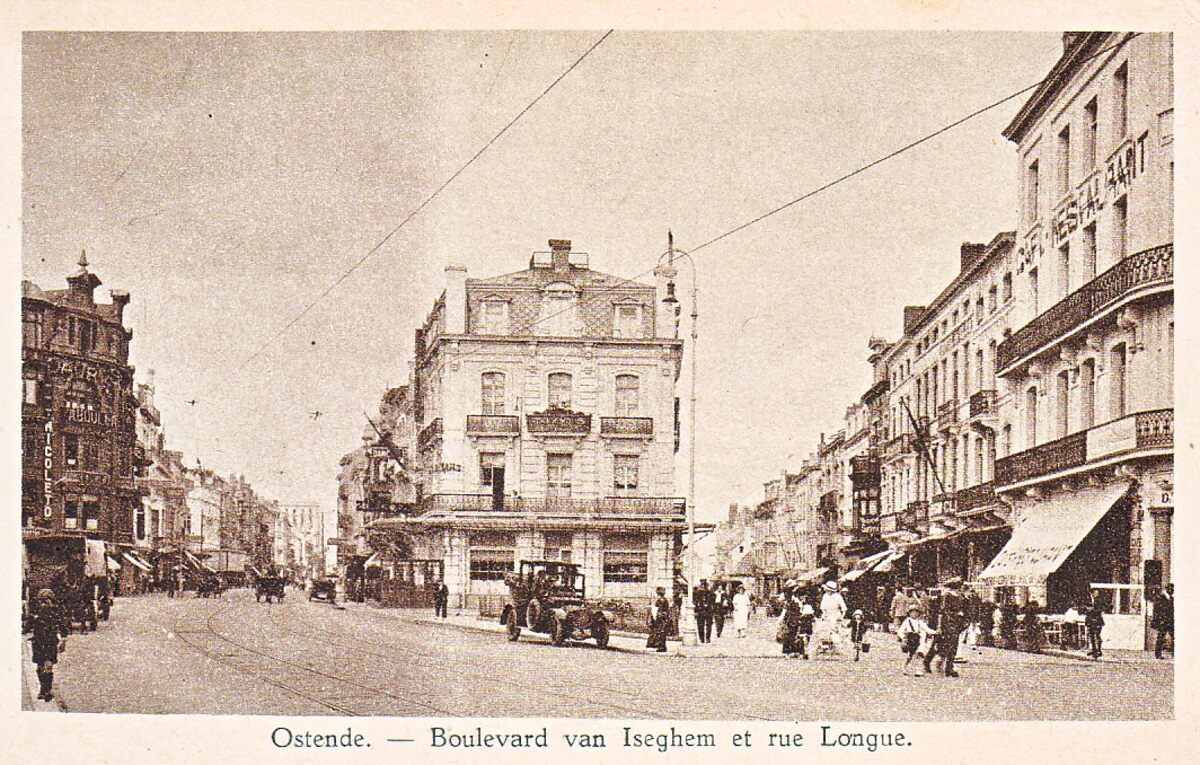 Ostende - Boulevard Van Iseghem er rue Longue. - De Van Iseghemlaan (links) en de Langestraat. De ruimte vooraan is nu het Monacoplein