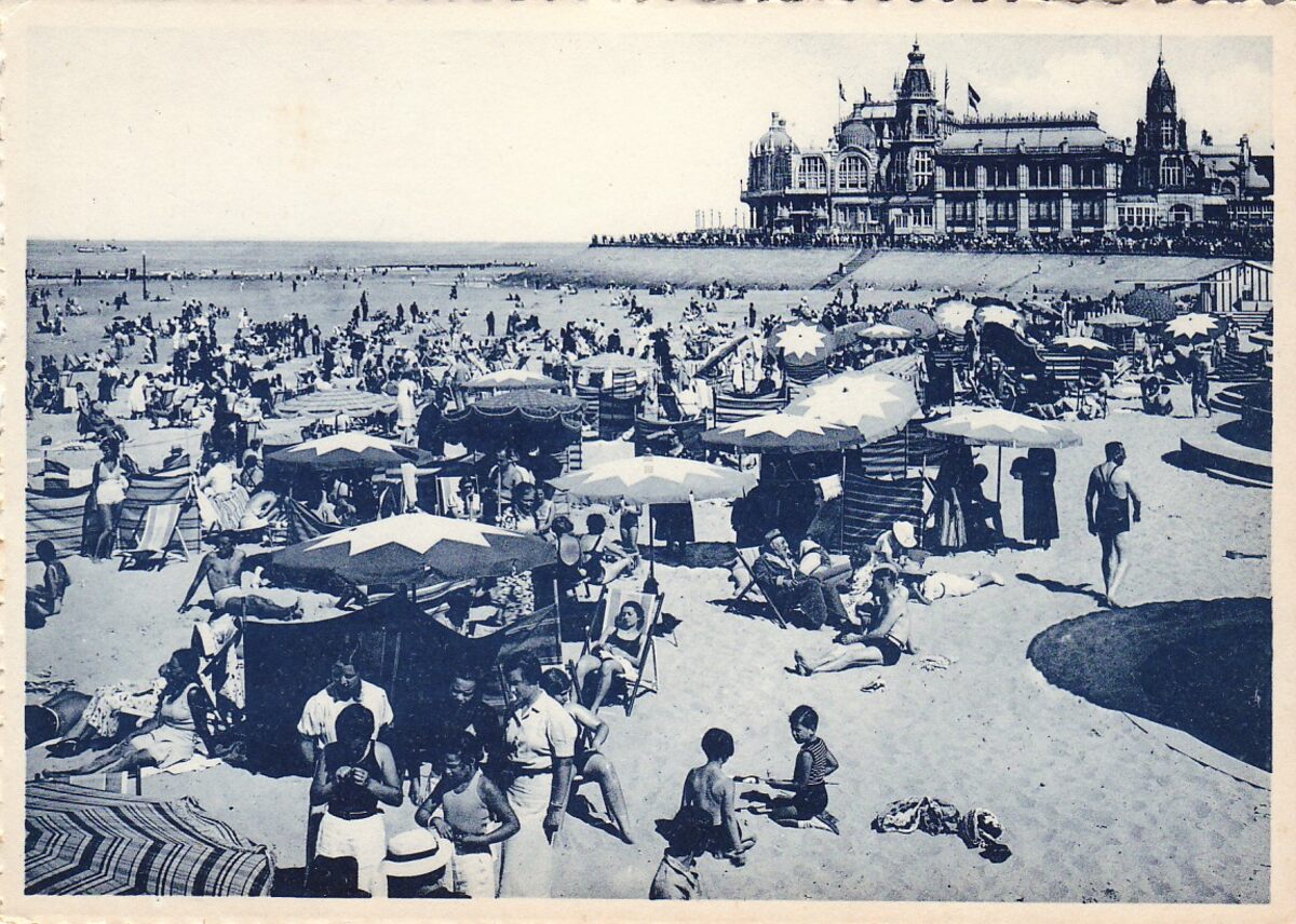 A. Montmorency, 17, Bd. M. Lemonnier, Brux. N°3120. - La Plage et le Club des Sports. - Met vermelding Hotels Océan et Continental Ostende. - Strandrecreatie op het "groot strand" met zicht op de westgevel van het derde kursaal.
