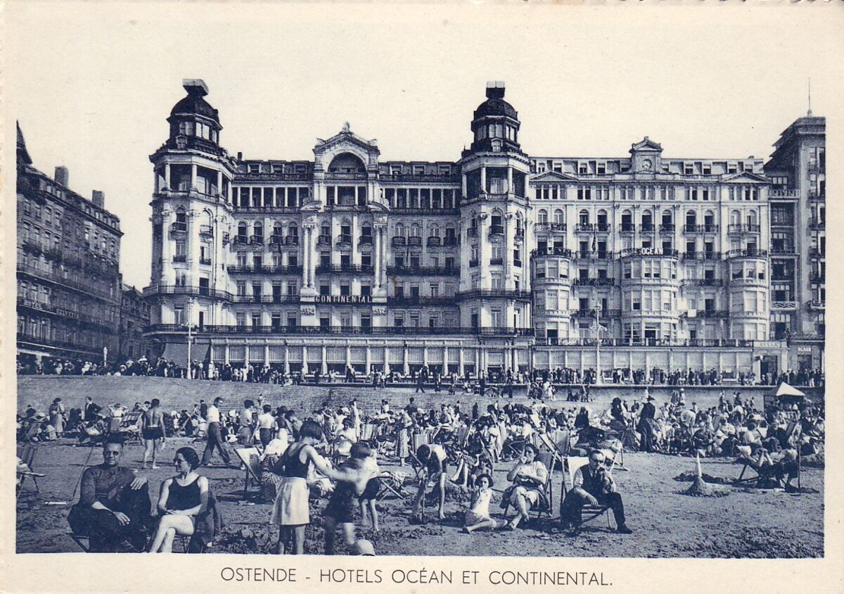A. Montmerency, 17, Bd. M. Lemonnier, Brux. N°3083. - Ostende -Hotels Océan et Continental. Links vanaf de Ijzerstraat de hotels "Continental" en "De l'Océan". Strandrecreatie op het "groot strand"