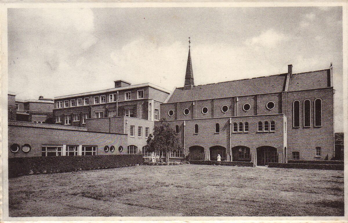 Formaat : 9 x 14 cm. - Nels. - H. Hart Kliniek, Oostende. Zicht uit den hof.