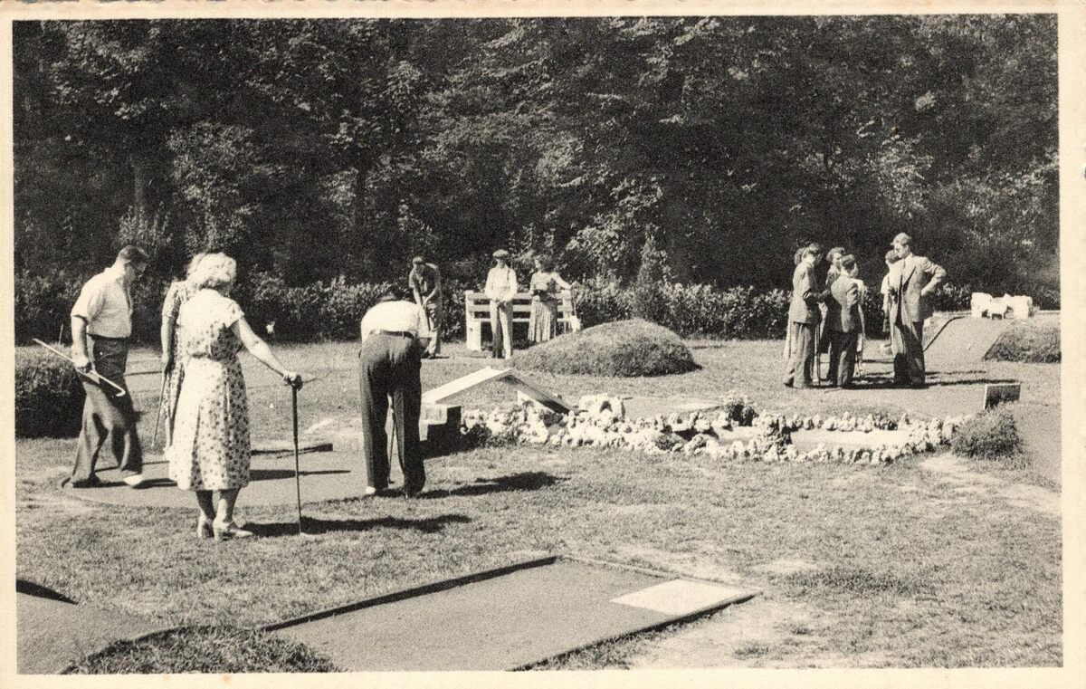 Nels, Ern. Thill, Bruxelles, n°33. - Ostende - Petit Golf. Oostende - Klein Golfspel. Ostend - Tom Thumb Golf. - Vanaf 1 januari 1949 werd voor het terrein een vergunning verleend aan Robert Lanoye voor de exploitatie van een minatuurgolf, kegelspel, cochonnetspel en een buvette met terras. Cochonnetspel of petanque. De cochonnet is het houten balletje in het spel