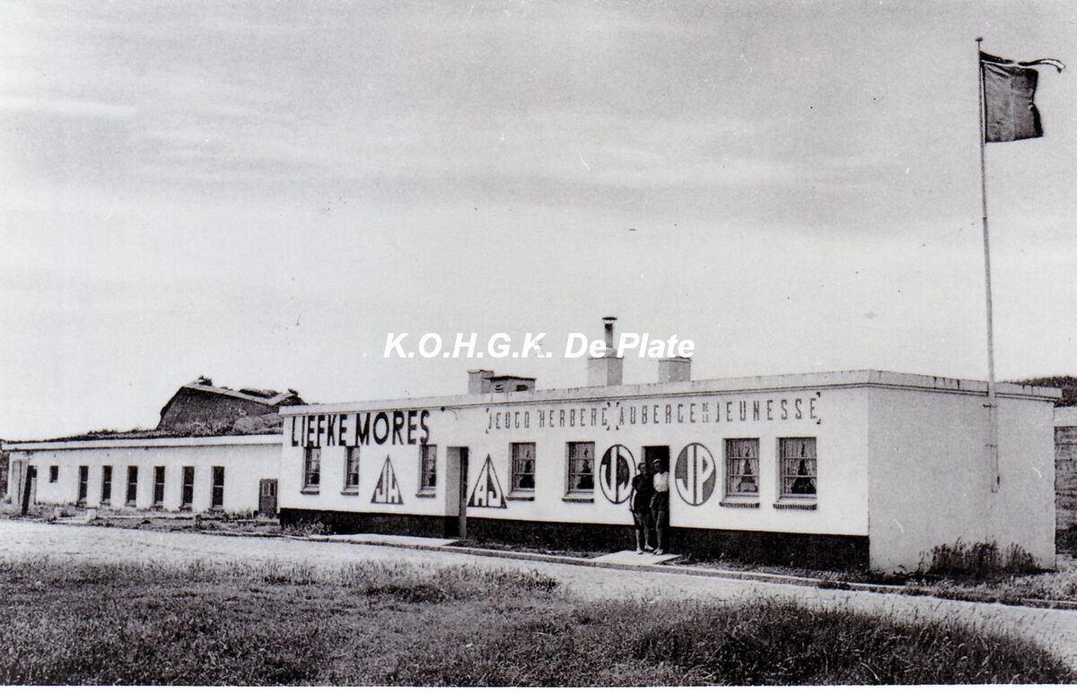 2 foto's : 14.5 x 10 cm. - De jeugdherberg "Liefkemores" werd uitgebaat door Frans Brysse en was genaamd naar de vroegere benaming van deze wijk. De jeugdherberg was gevestigd in oude gebouwen die de Duitse bezetter tijdens de Tweede Wereldoorlog had opgetrokken.