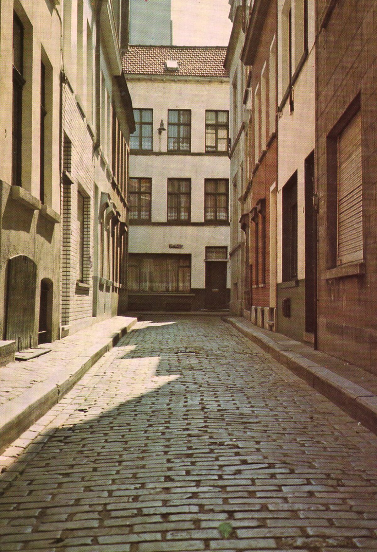 10 jaar Kulturele Raad Oostende 1967-1977. - Oud Oostende : De Verlorenstraat. - Rue Perdue. Een der kleinste en wellicht smalste straatjes van Oostende, tussen de Kapucijnen- en Sint-Niklaasstraat.