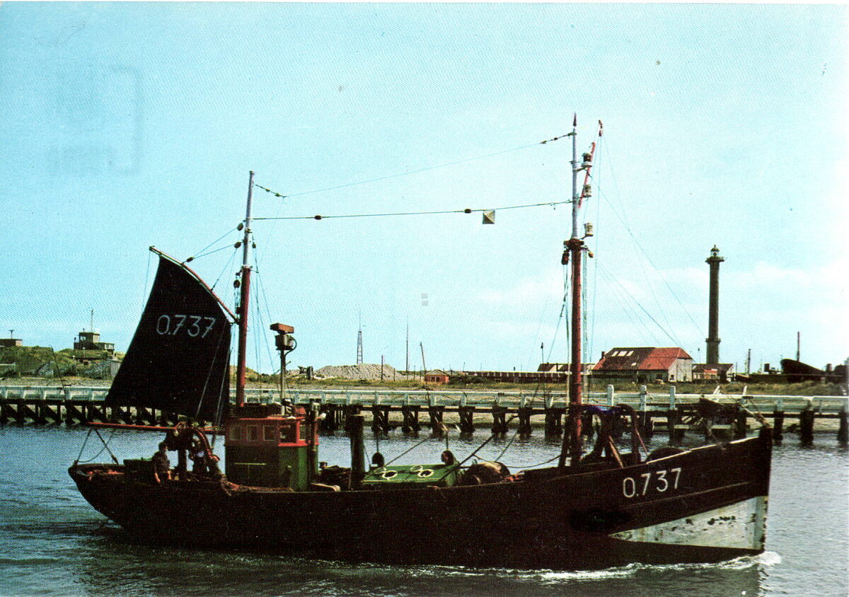 Cromo. - Op de achtergrond het Ooststaketsel, de oosteroever en rechts de vuurtoren "Lange Nelle".