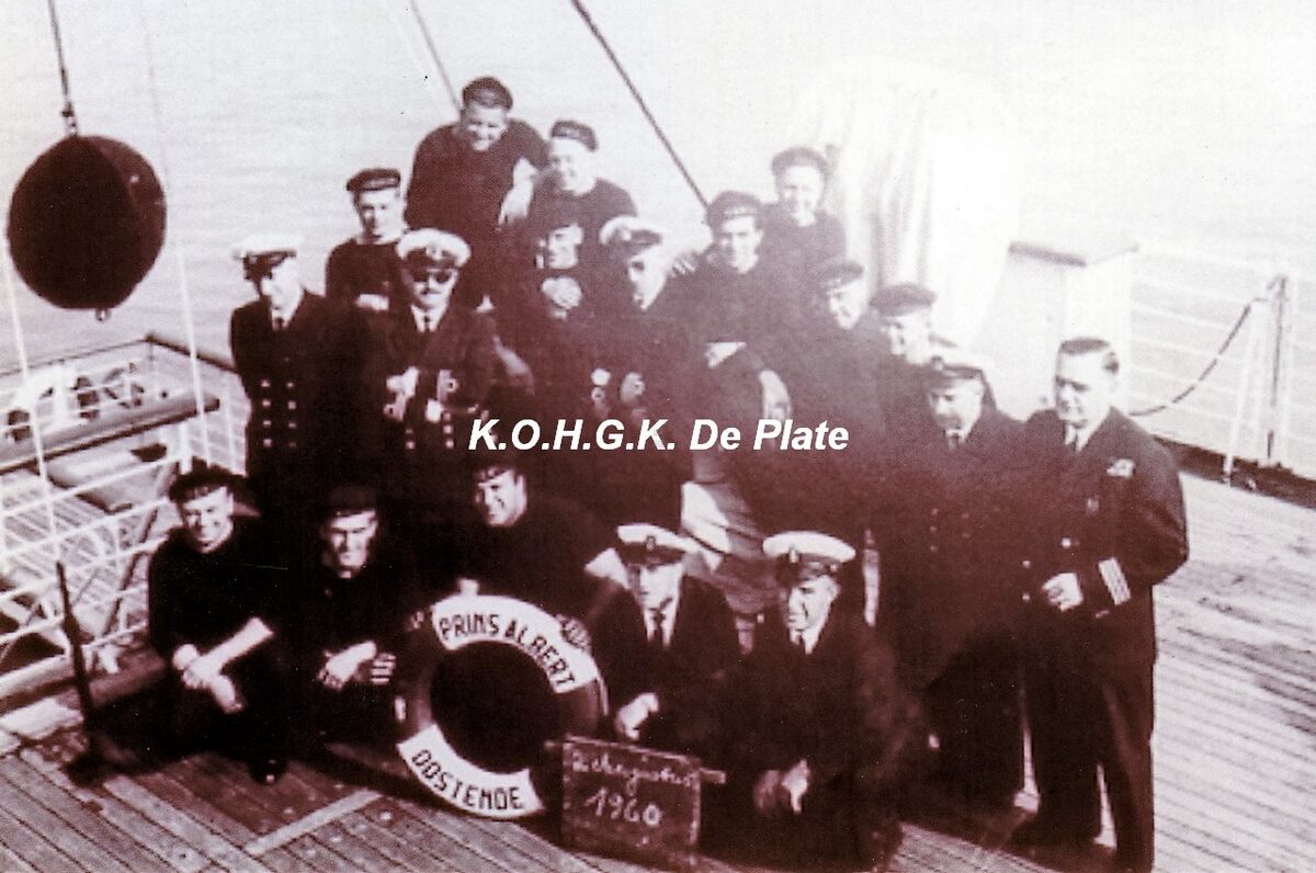 Afdruk, formaat : 18 x 12 cm. - Uiterst rechts, Deschepper G. (chief-steward)