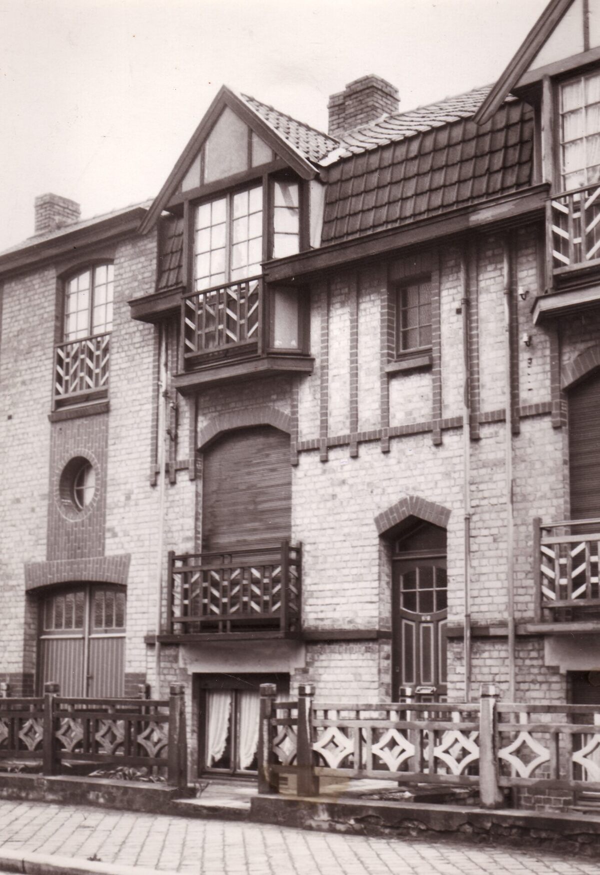Formaat : 18 x 13 cm. - Voorgevel van een woning in de Distellaan, nr. 45 of 49. Burgerwoningen in cottagestijl van de jaren 1920.