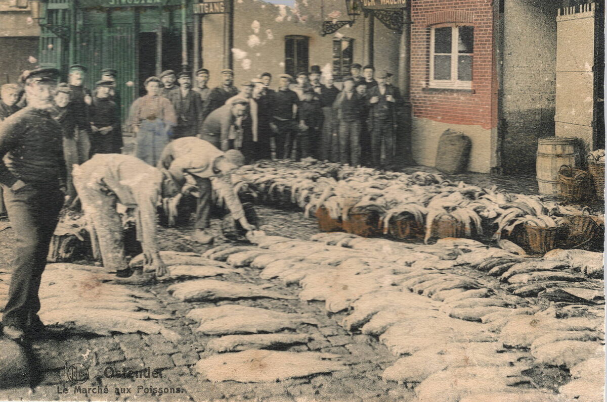 Nels. - Ostende, le Marché aux Poissons. - Bijgekleurde kaart.