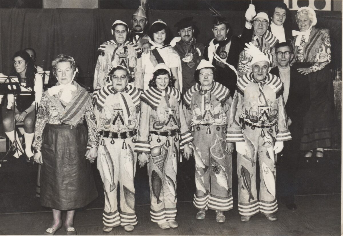 Formaat : 12,5 x 17,5 cm. - Leden van de folkloregroep "Gilles der Zee". Boven rechts, Lucy Loes. - Map 006 C-26