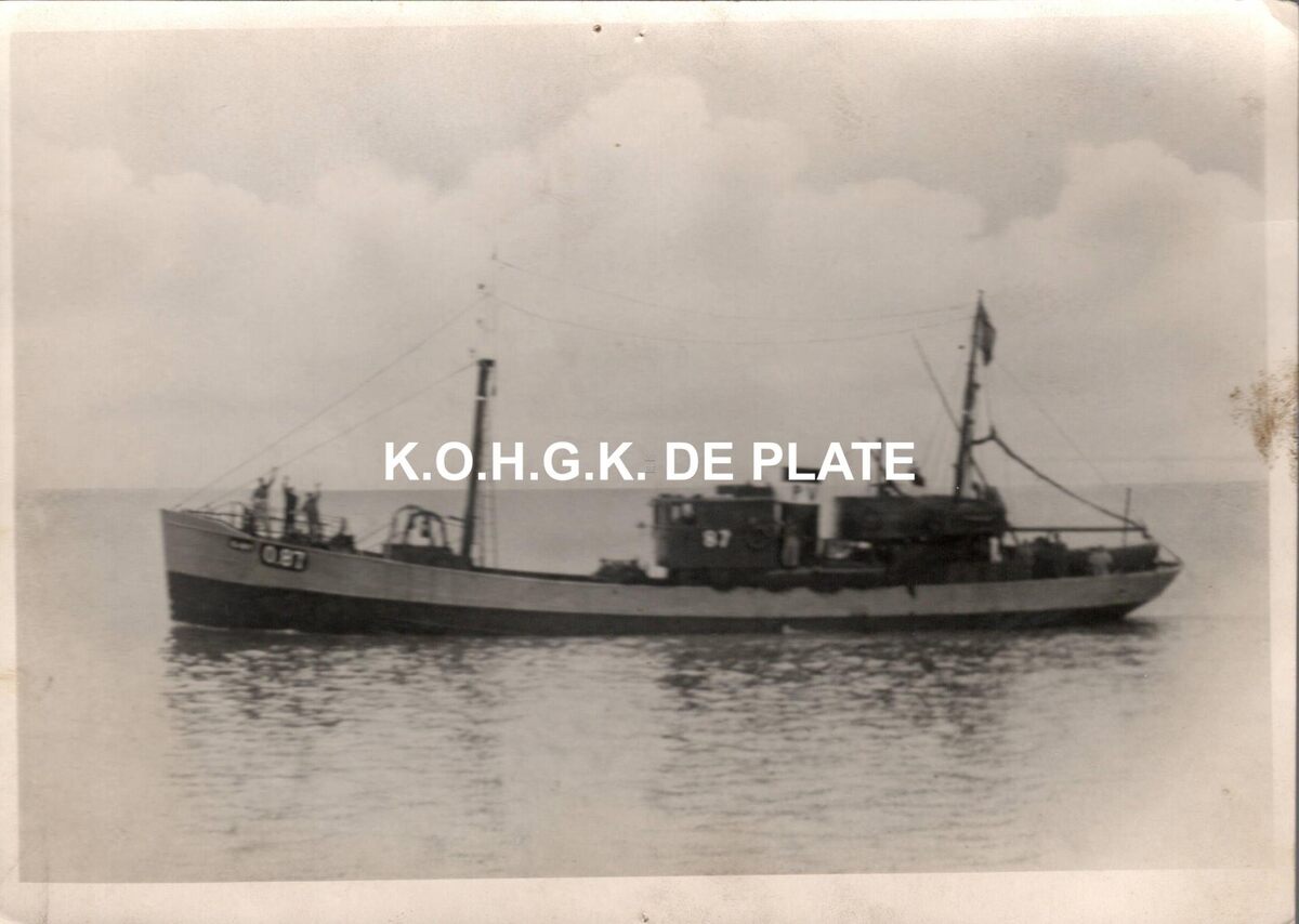 Formaat : 15 x 21,5 cm. - Stalen zijtreiler, gebouwd in 1930 op de scheepswerf "Béliard-Crighton" (Oostende) voor de rederij "Pêcheries à Vapeur".