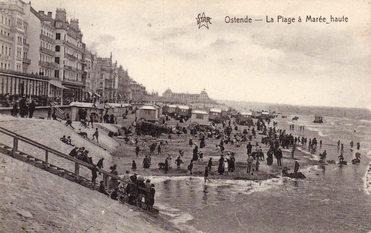 Star, N° 2300. - Ostende - La Plage à Marée haute. - Strandrecreatie op het Groot Strand bij vloed. Links, de Zeedijk ten westen van het Kursaal met de grote hotels en op het einde het Royal Palace Hotel