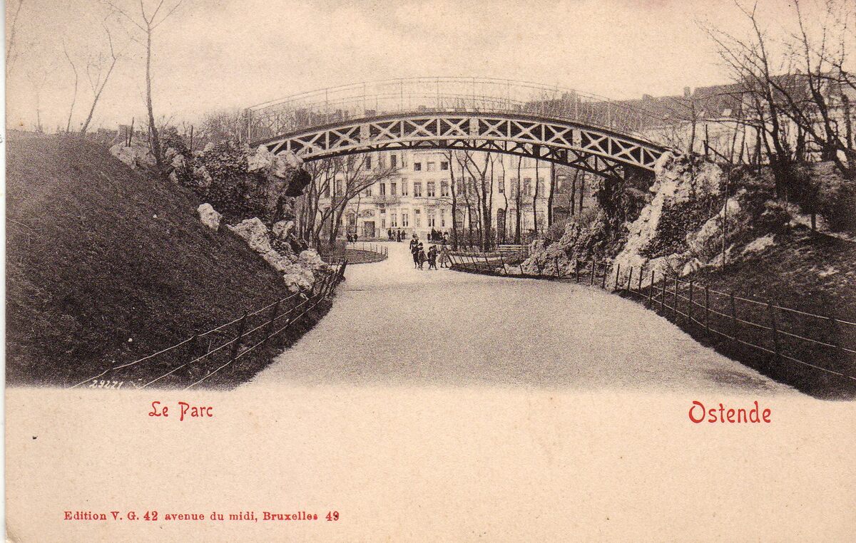 Edit. V.G. [=Victor Grégoire], 42, Avenue du Midi, Bruxelles, N° 49. - Ostende - Le Parc. - Het Leopoldpark met, op de achtergrond de Euphrosina Beernaertstraat