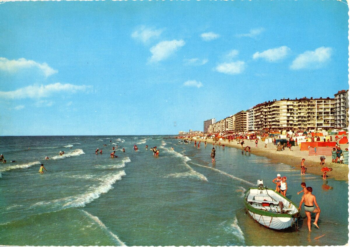 Cromo/Krüger 933/142. - Strandrecreatie op het strand van Mariakerke. Vooraan, een reddingsboot van de strandreddingsdienst