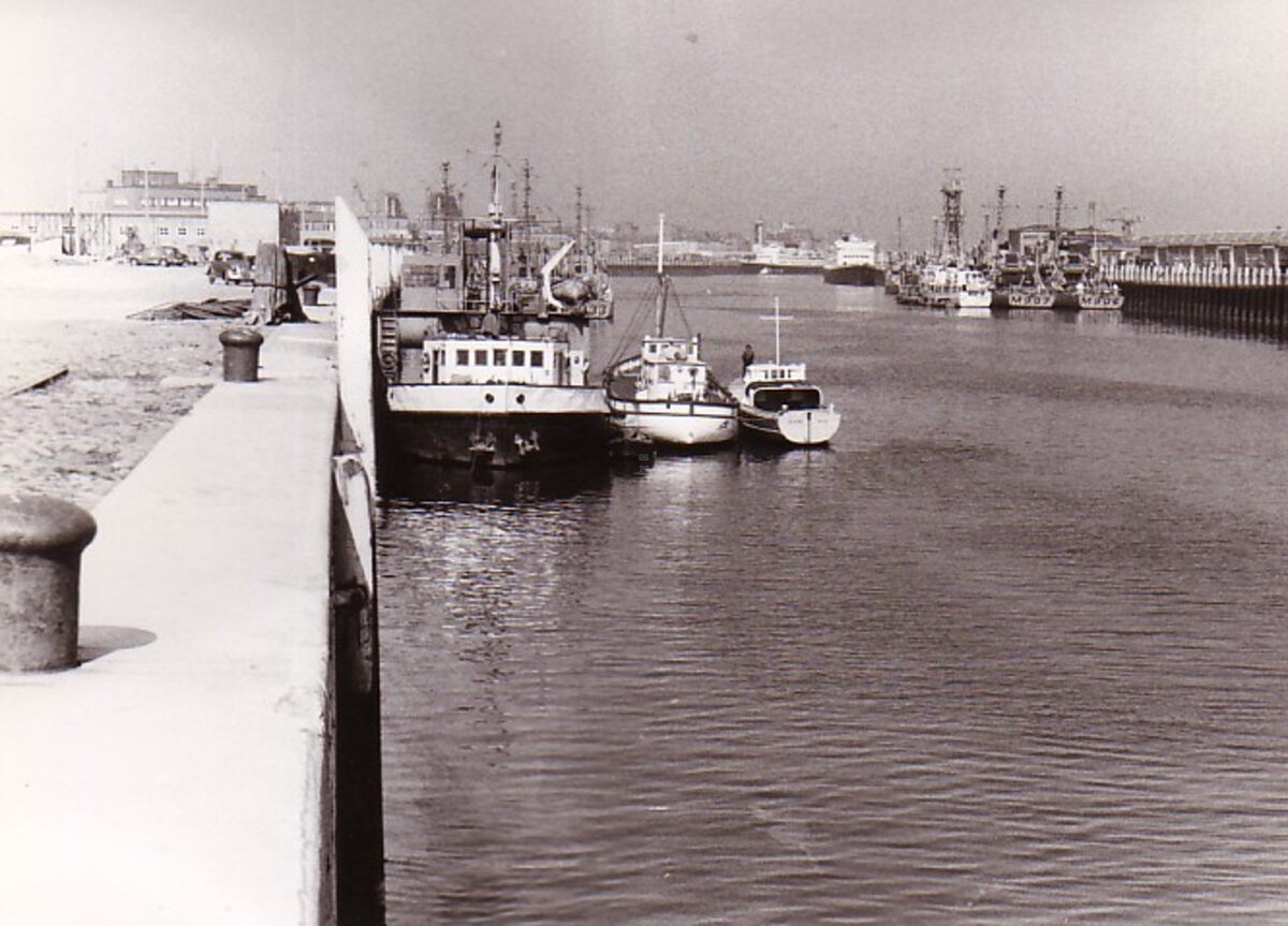 Formaat : 18 x 13 cm. - Zicht op de haven en de Cockerillkaai (links). Rechts, de hoogzeemijnenvegers M.906 "Breydel" en M.907 "Artevelde"
