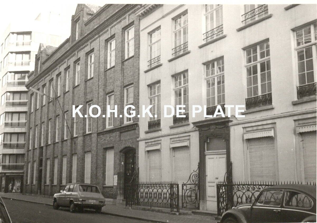 Formaat : 9 x 14 cm. - Zie Van Caillie nr 4, 169. In 1860 kopen de zusters dit herenhuis in de Kaaistraat. In 1878 kopen zij ook het aanpalend pand voor de dagelijkse consultatie van behoeftige mensen. In 1956 verkopen ze hun klooster en ex-materniteit aan het Sint-Andreaslyceum.