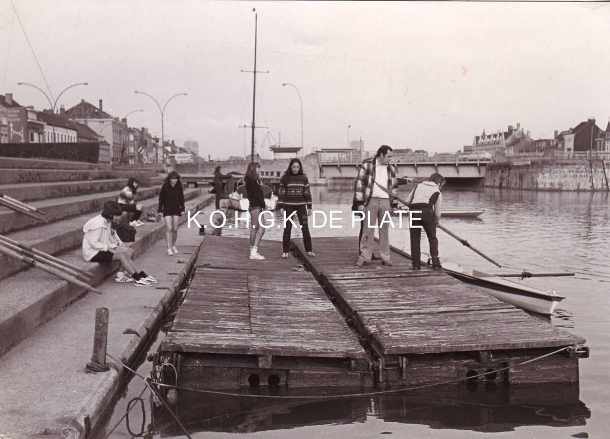 Formaat : 13 x 18 cm. Aanlegsteiger van de KRNSO aan het begin van het kanaal Oostende-Brugge nabij hun clubhuis. Links de Prins Albertlaan tot over de brug(Bredene-Sas), bij grenswijziging in 1970 bij Oostende gevoegd. Rechts in de achtergrond het Koninklijk Werk IBIS, Prinses Elisabethlaan 1-2, Bredene