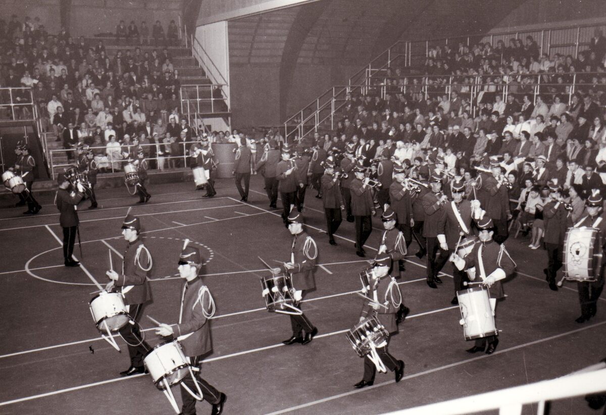 Foto : 22 x 13 cm. - Showkorps Willen is Kunnen in het Sportcentrum van de Koninklijke Stallingen aan de Koninginnelaan