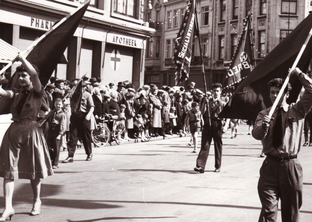 De 1-meistoet aan het kruispunt Petit Paris. Links apotheek Beuselinck