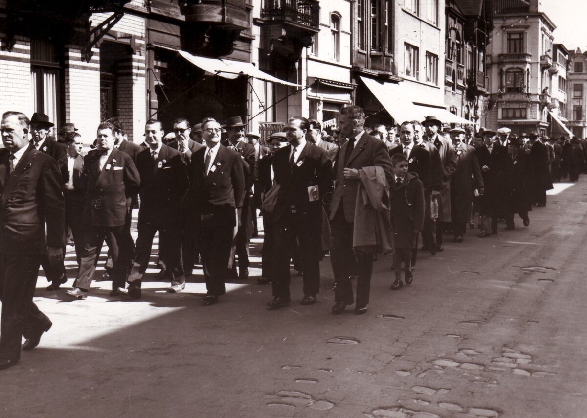 De 1-meistoet op de Nieuwpoorts steenweg. Op de achtergrond links de Koninginnelaan.