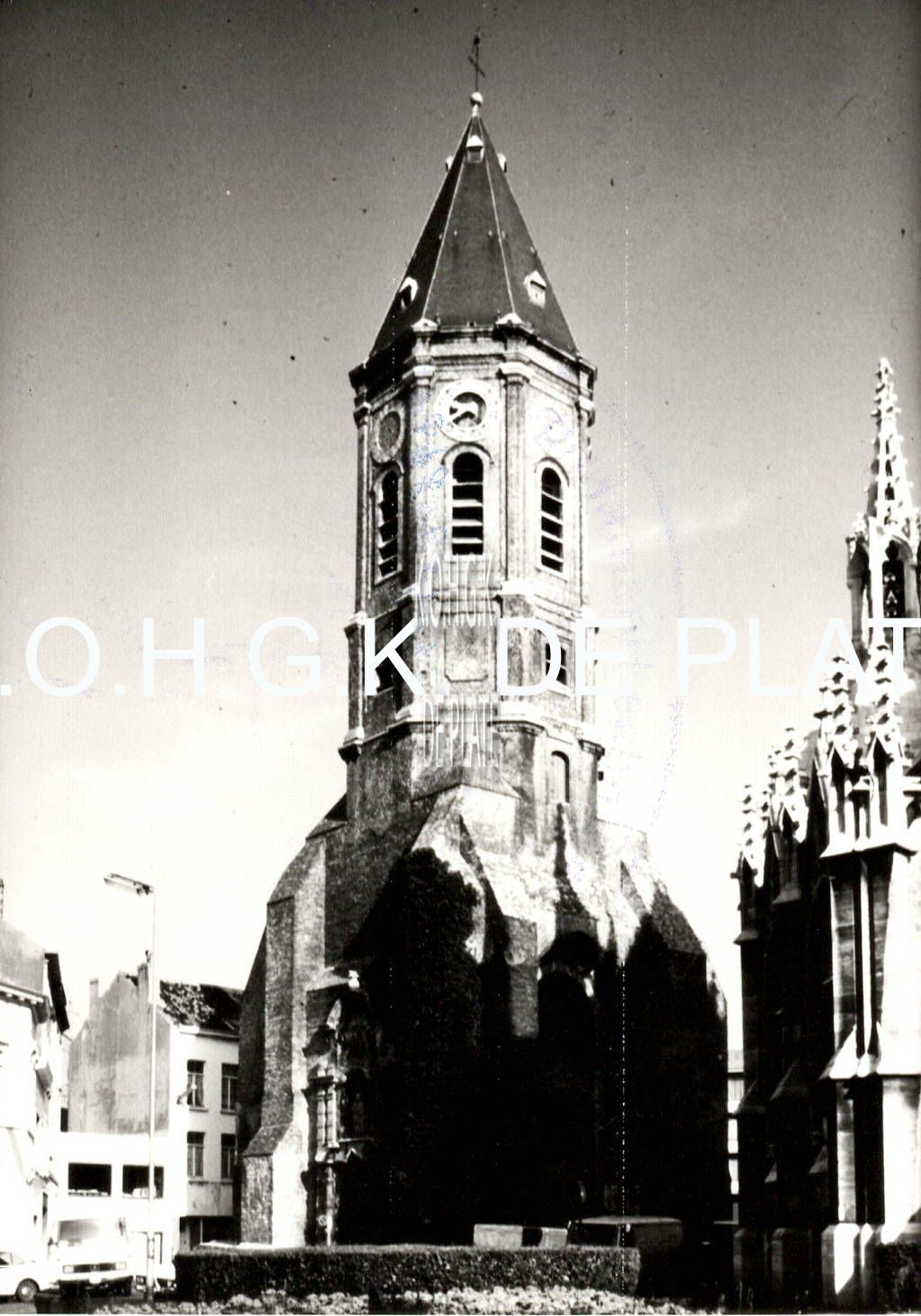 Formaat : 13 x 9 cm. - De oude toren van de Sint-Pieterskerk (bijgenaamd de Peperbusse). Op de achtergrond een gedeelte van de Sint-Pietersstraat