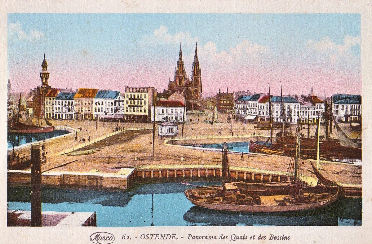 Marco Marcovici 62. OSTENDE - Panorama des Quais et des Bassins. - Bijgekleurde kaart