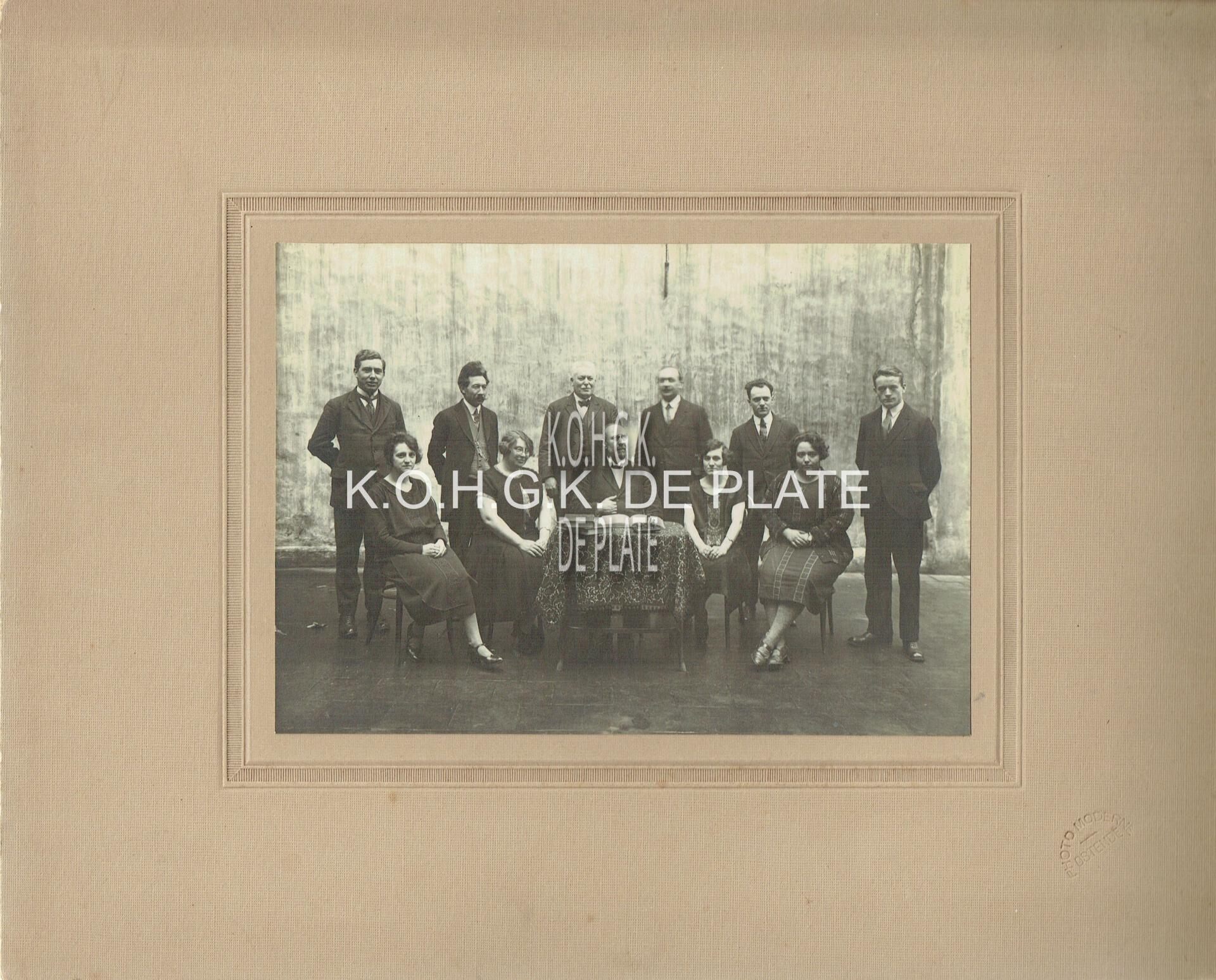 Formaat : 12 x 17 cm. - Herinnering aan de Van Nesteschool in de Schippersstraat . Directeur Valentin Dekeyser (zittend in het midden), Staand: Leraren Coron - Robert Patfoort - H. Degraeve - H. Cambron - S. Derock - Alleman - Zittend: Mevr Decock-Vanwijnsberge - mevr Van Humbeke-Dechef - mevr Corvelein. "Schrijfwijze van de namen nog nazien" (Georges Van Duyvenboden)