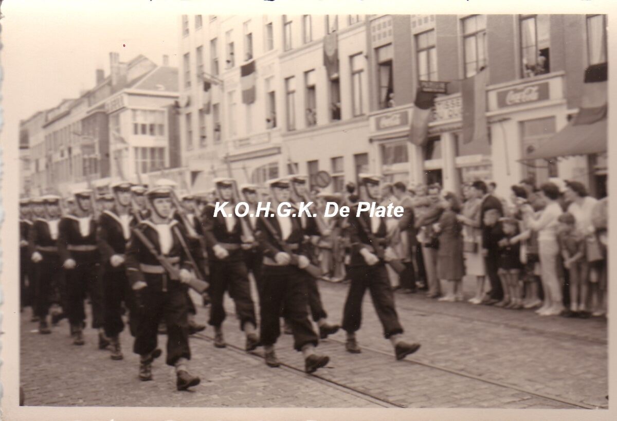 Formaat : 10.5 x 7 cm. - Peloton van de Belgische Zeemacht op de Visserskaai.